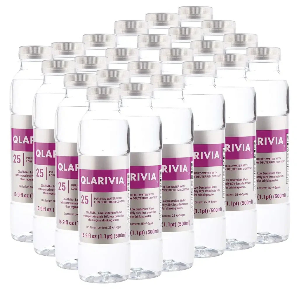 A QLARIVIA 25 ppm-es csökkentett deutérium tartalmú víz. Az egyedülálló formula deutérium koncentrációja 5x kisebb, mint az átlagos ivóvízé.